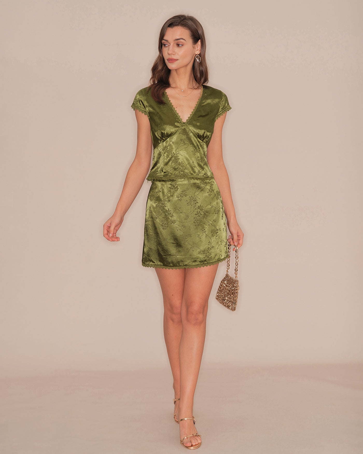 Green Floral Satin Mini Skirt