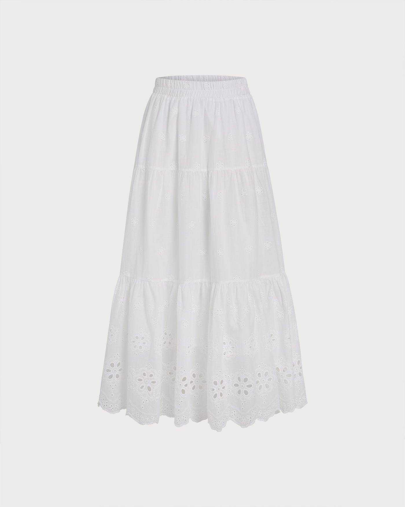 White Floral Textured Midi Skirt