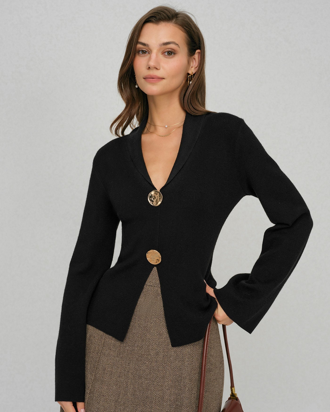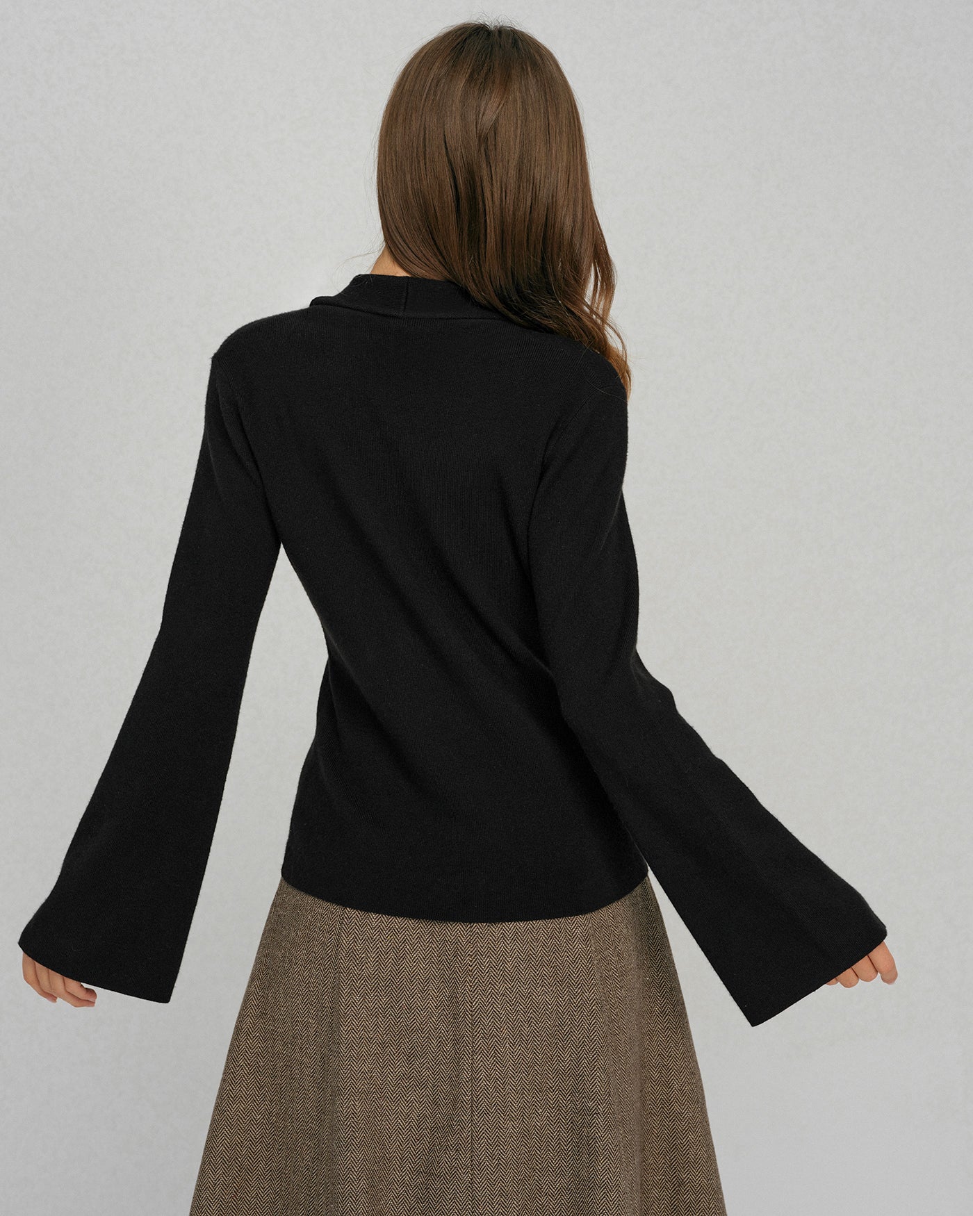 Black Bell Sleeve Button Collar Sweater