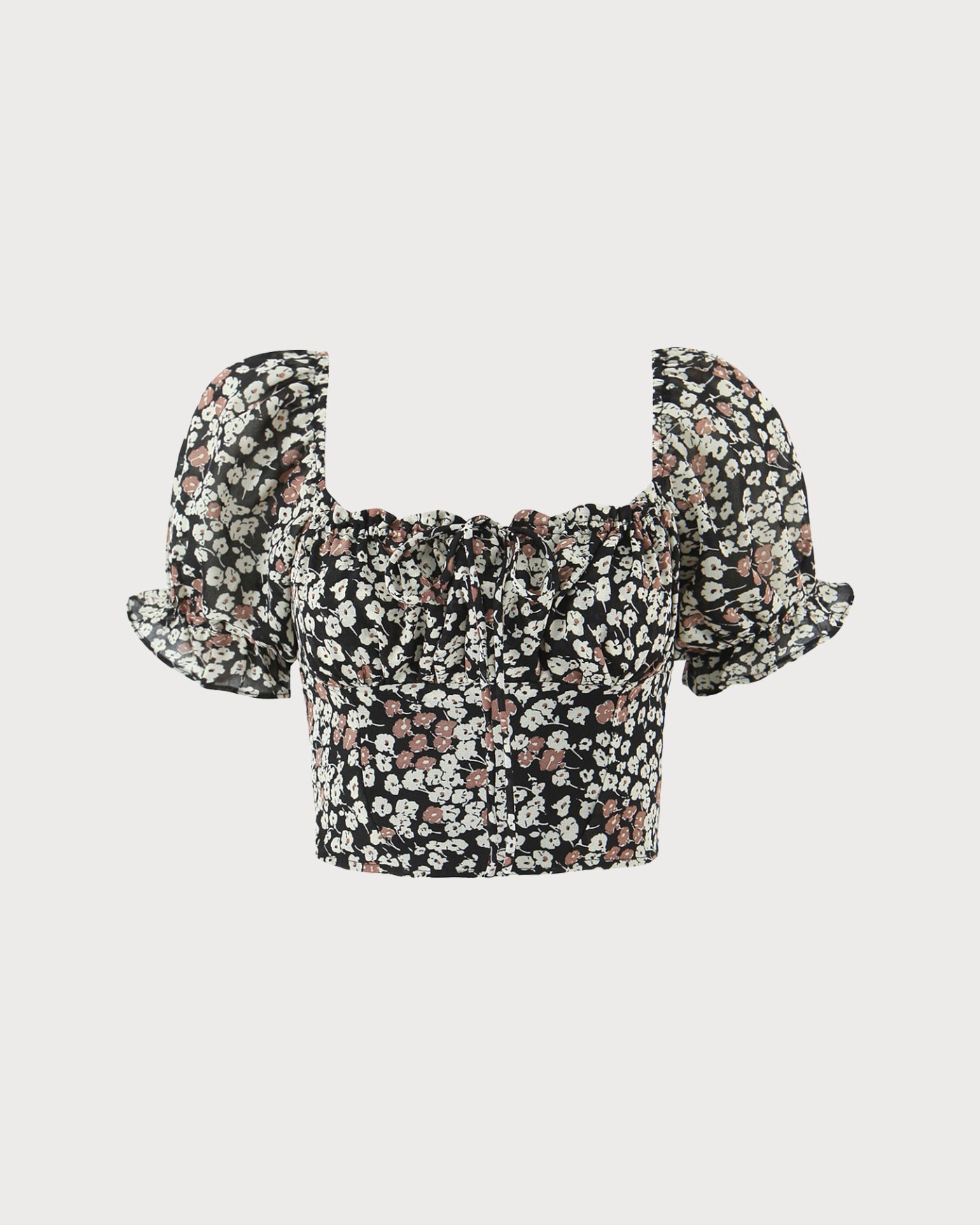 Black Square Neck Floral Tee