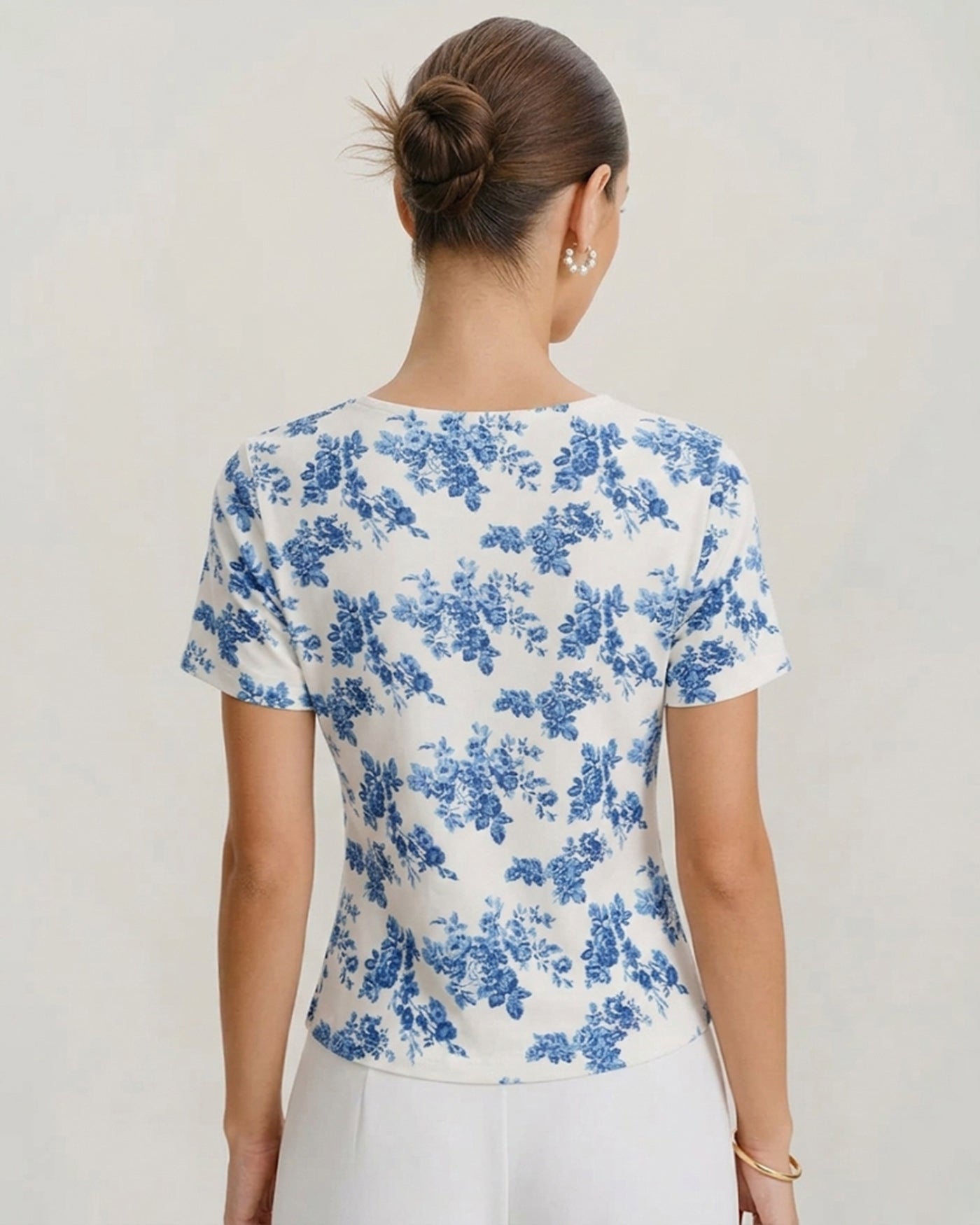 Description: Infuse your wardrobe with coastal charm using our Blue & White Floral Square Neck Ribbed Top. Inspired by classic porcelain and chinoiserie designs, this top features a vivid blue botanical print against a crisp white background, creating a fresh, retro-inspired look perfect for sunny days.