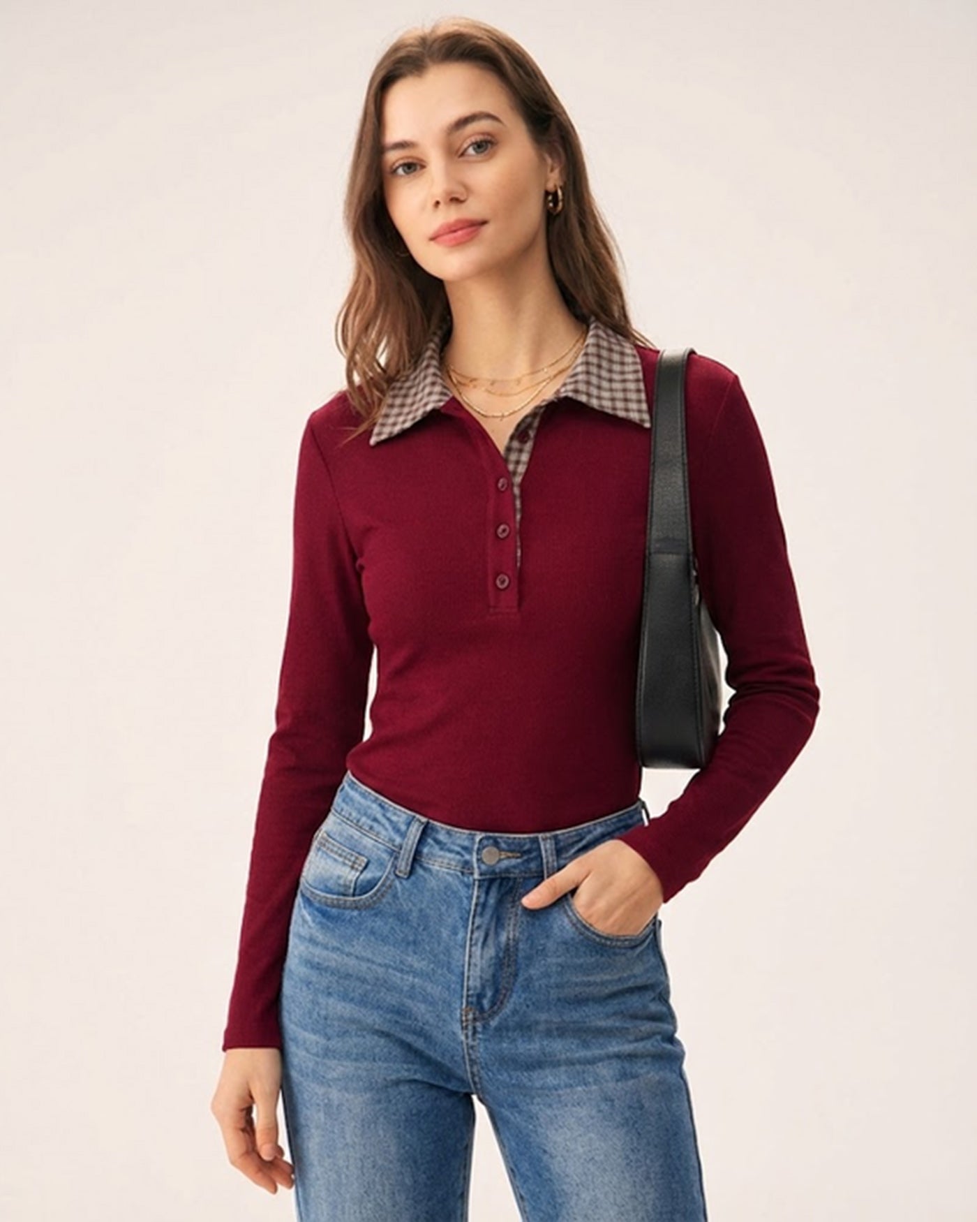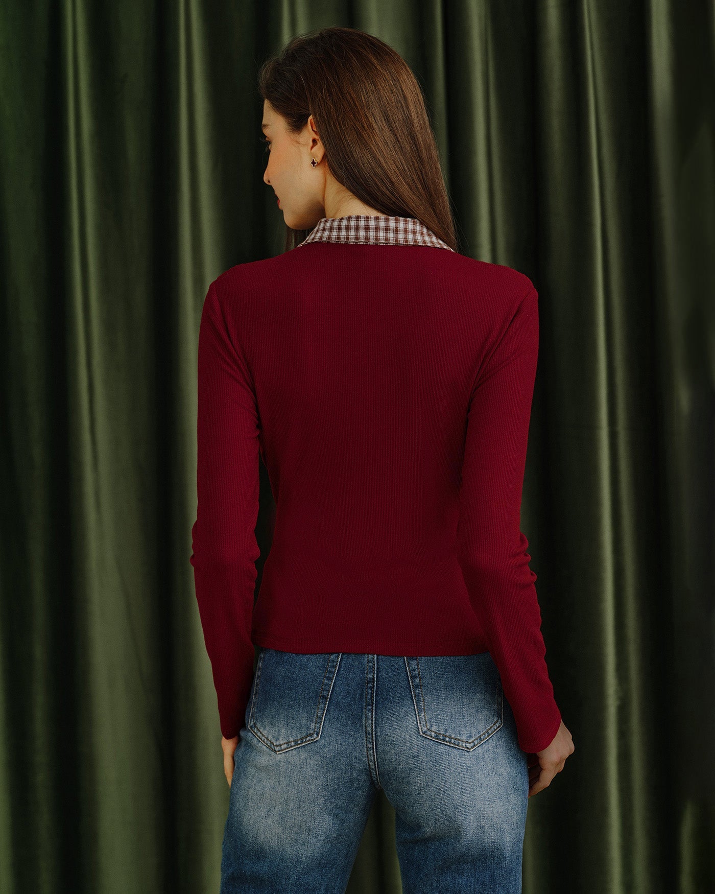 Red Plaid Collar Viscose Tee